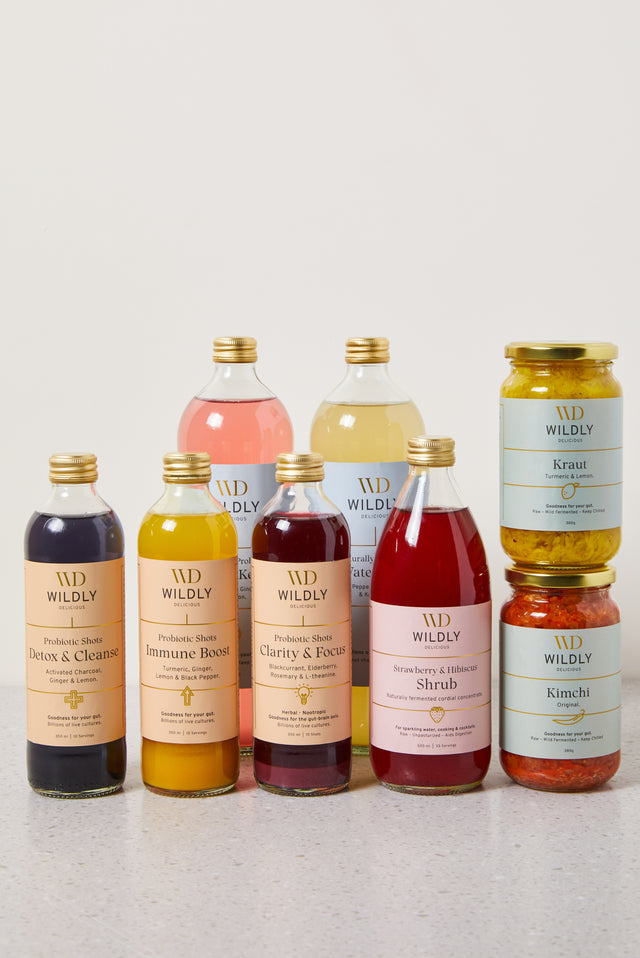 Great gut health starts with a balanced, happy and healthy microbiome. Beneficial live cultures, also known as probiotics are what fill your tummy to create a robust well functioning gut and immune system. Some businesses pasteurise their ferments for extra long shelf life, unfortunately this kills all the beneficial live cultures. Here at Wild Delicious we not only wild ferment, we also keep our krauts, shots and kefirs raw and live cultured for optimum health benefits and the best flavour. Wildly ferments are full of gut balancing, immune boosting gut goodness. Great for tummies of all sizes and ages.