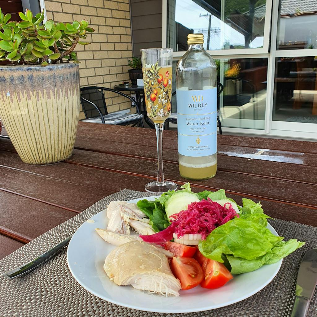 Naturally sparkling like champagne (as opposed to force carbonated) We use only real ingredients to flavour our water kefir no “flavours” no fake “natural flavours” real ingredients only.